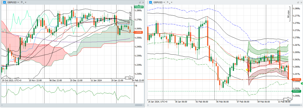 On Tuesday, we observed a firm rejection at the daily cloud top, with the currency pair peaking at 1.2678. This resistance level is significant for traders looking for signs of potential reversals or continuations in market trends.