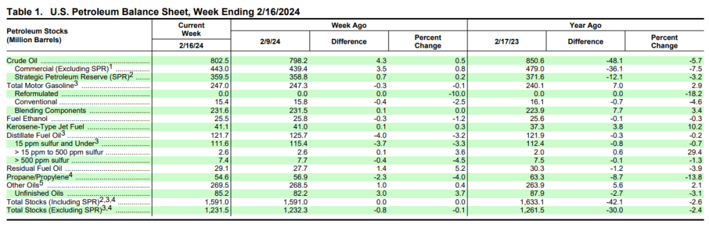 The latest data on the U.S. Petroleum stocks has been released, providing us with an insightful snapshot of the country’s energy reserves for the week ending February 16, 2024. Let’s dive into the numbers and see what they tell us about the current state of petroleum supplies.