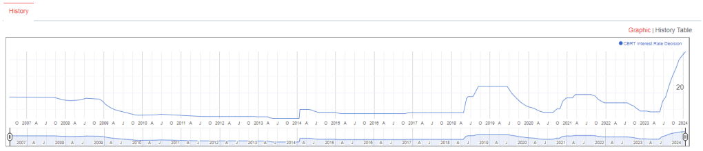 As the financial world turns its eyes towards Ankara, the Central Bank of the Republic of Turkey (CBRT) is on the verge of making its next interest rate decision. This decision comes at a critical juncture, with Turkey’s economy facing a complex mix of inflationary pressures, currency volatility, and geopolitical uncertainties. In this preview, we’ll delve into the factors likely to influence the CBRT’s decision, market expectations, and the potential implications for the Turkish Lira and the broader economy.