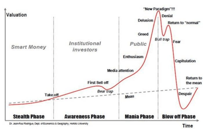 The result is a market that is hedging against FOMO. Traders aren’t just managing financial risks; they’re managing the risk of regret. But herein lies the danger: emotions, especially greed, can cloud judgment. What follows after the Greed Phase can often be a stark reality check – the market peaks and then enters the Blow-off Phase. This phase is characterized by denial, fear, and eventually despair, as the bubble bursts and valuations plummet back to, or below, their mean levels.