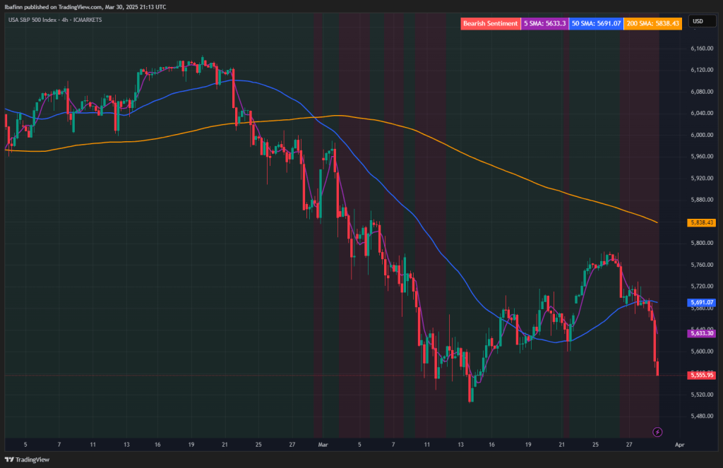 The script automatically adds text labels to the chart to indicate the current sentiment:
